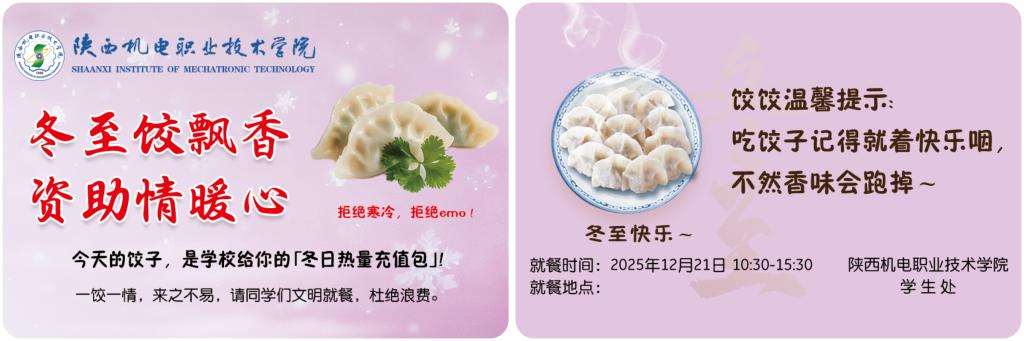 学校提前为同学们定制了精美的饺子领取卡,卡片上的心意与祝福,承载着暖暖的关怀与祝福。这份“暖心饺子餐”不仅慰藉了大家的味蕾,更让融融暖意在校园里流淌。希望同学们能在这份简单的美好里,感受节日的氛围与家的温馨