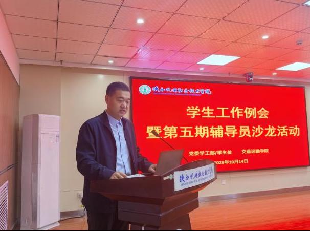 我校于10月14日上午在宝福路校区汽车机电大楼视频会议室召开学工例会暨第五期辅导员沙龙活动,学工系统干部、教师、专职辅导员和新疆派驻教师参加。会议由党委学工部部长、学生处处长王建斌和交通运输学院党支部副书记、副院长冯秋佳分别主持。