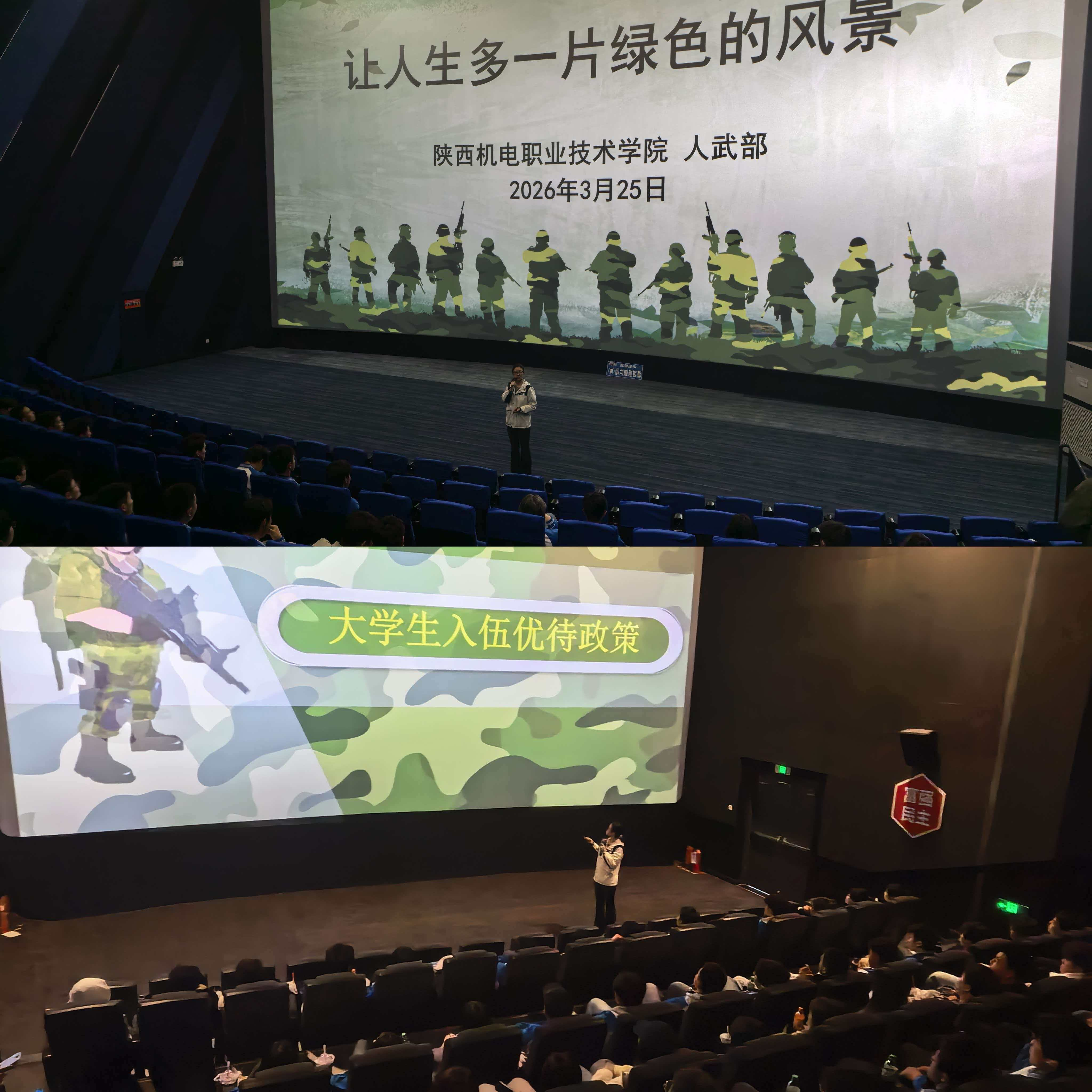 为落实立德树人根本任务,进一步强化青年学生国防观念与国家安全意识,激发机电学子参军报国的热情,近日,我校组织开展“一站式”学生社区“光影铸魂强国防,青春逐梦赴军营”主题国防教育暨征兵宣讲活动,各二级学院有应征入伍意愿的学生代表及相关负责老师参加。